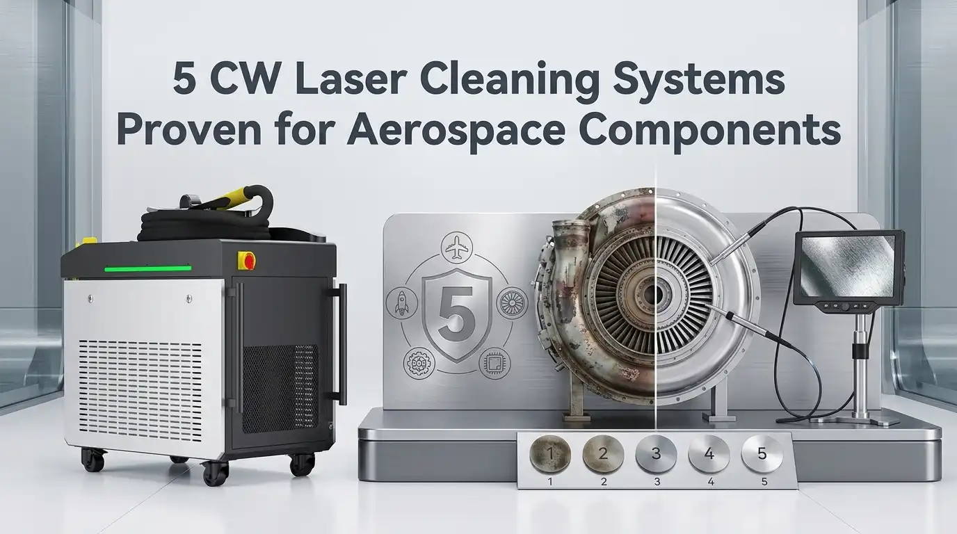 Aerospace MRO facilities spend an estimated $2.8 billion annually on surface preparation alone — and roughly 35% of that cost traces back to chemical stripping, abrasive blasting, and the hazardous waste they generate. A CW laser cleaning machine for aerospace component maintenance eliminates most of those hidden costs by delivering continuous, thermally controlled energy that removes coatings, oxides, and contaminants without altering substrate metallurgy. This guide evaluates five proven CW laser cleaning systems purpose-built for aerospace work, comparing real-world performance data across power classes, portability, and regulatory compliance so your team can make a confident purchasing decision.