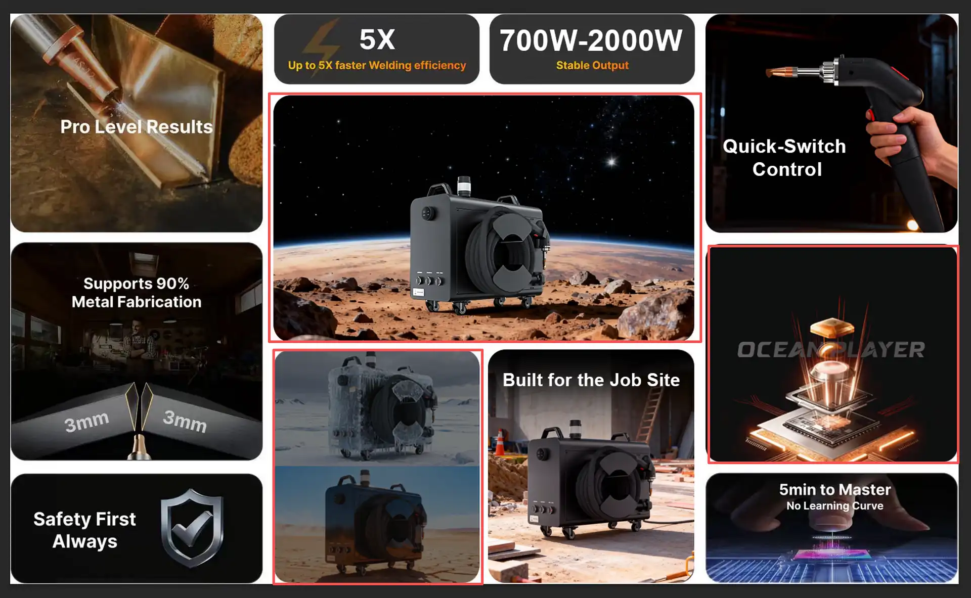 POWERFUL 1500W PENETRATION Step up to true industrial capability. The OP-1500W delivers a high-energy beam capable of welding stainless steel and carbon steel up to 5mm-6mm thick. It ensures deep, robust weld roots for structural components, making it far superior to lower-wattage models for heavy-duty applications.