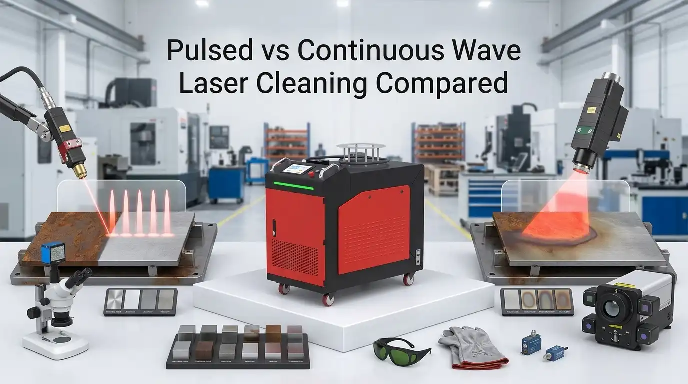 A 200W pulsed laser cleaner delivers peak power exceeding 10 kW per pulse — roughly 50× the instantaneous energy of a 200W continuous wave unit hitting the same spot. That single difference in energy delivery reshapes everything: cleaning precision, heat input, substrate safety, and long-term cost. If you’re asking pulse laser cleaner vs CW laser cleaner which is better, the honest answer is neither wins across every scenario. Pulsed systems dominate precision and heat-sensitive work; CW machines outperform on heavy-scale bulk removal where substrate damage tolerance is high. This guide breaks down real test data from both technologies so you can match the right tool to your actual application — not a salesperson’s pitch.
