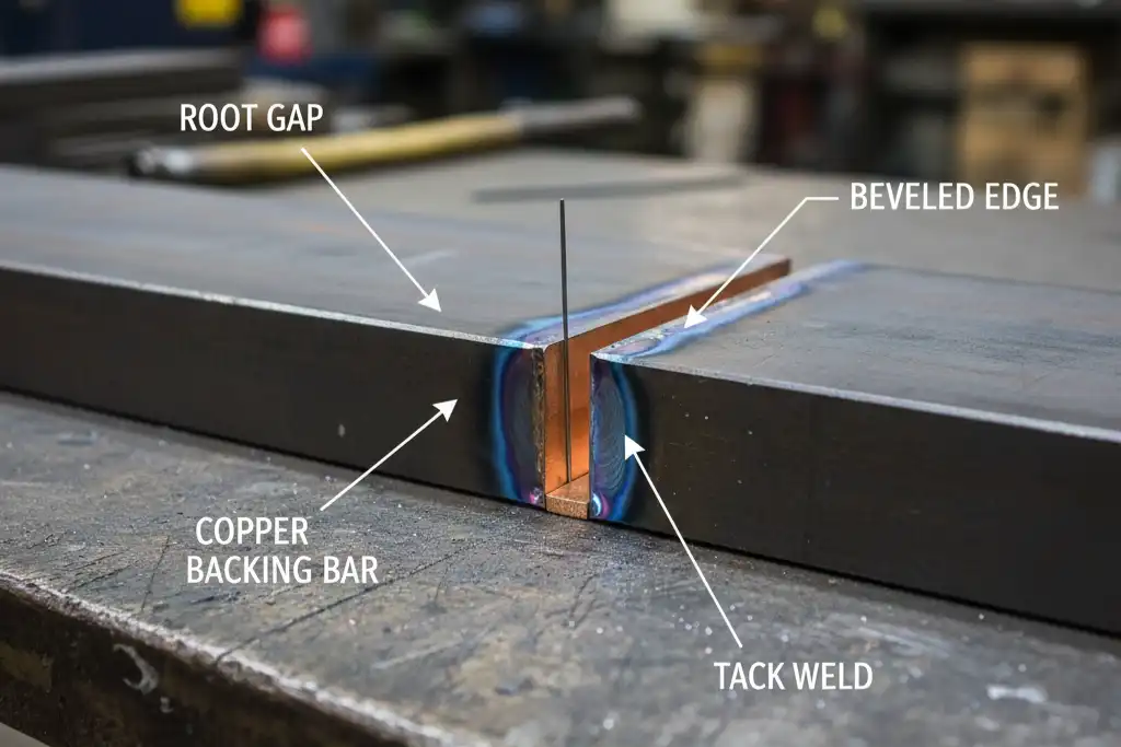The dimensional examples in this article are illustrative. Final root‑gap limits, fit‑up tolerances and acceptance criteria must follow the project WPS/PQR and the applicable standards (for example: AWS D1.1, ASME B31.3, ISO 9692‑1, API 1104). If values differ from your WPS/PQR, use the WPS/PQR or perform a PQR to qualify changes.